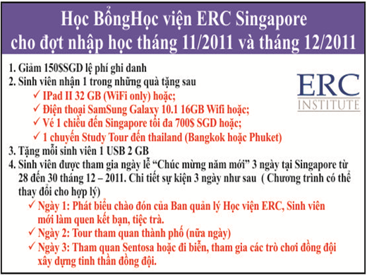4. Sinh viên được tham gia ngày lễ “Chúc mừng năm mới” 3 ngày tại Singapore từ 28 đến 30 tháng 12/2011. Điều kiện áp dụng: