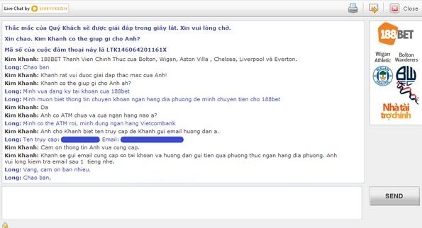 Xin vui lòng sử dụng tỉ giá vừa cung cấp để qui đổi đúng số tiền từ VND sang USD vì hệ thống sẽ không làm tròn số và không hiểu được số thập phân. 188BET sẽ kiểm tra và thực hiện việc cập nhật tiền gửi khi nhận được đúng và chính xác thông tin tại Biên Lai và mã số gửi tiền DLBTXXXXXXXXXXX tại hệ thống. Để biết thông tin chi tiết tài khoản ngân hàng 188BET tại Việt Nam,các bạn vui lòng Chat trực tiếp với nhân viên hỗ trợ tại Mục Live Chat trên Trang chủ của 188BET.Xin lưu ý với các bạn,188BET chỉ cung cấp số tài khoản ngân hàng của họ khi đã đăng ký thành viên tại Website của họ.