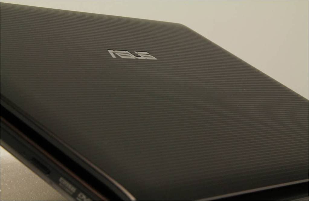 Vỏ máy đen nhám khắc vân vẩy cá, ở giữa là logo ASUS màu bạc nổi bật.có thể thấy thiết kế này hơn khác với những những anh em mang sắc màu khác