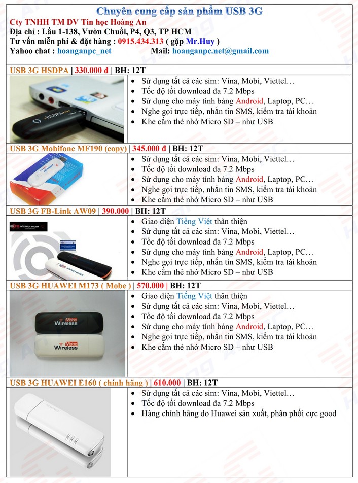 Những mẫu USB 3G giá rẻ ,bình dân hot nhất hiện nay do chúng tôi cung cấp.