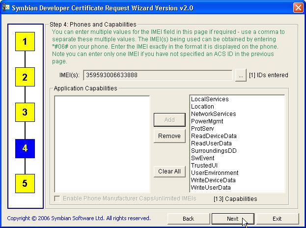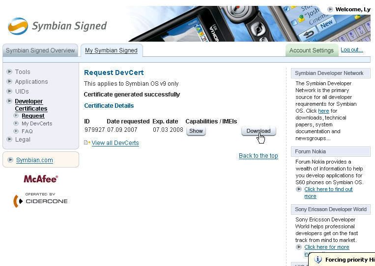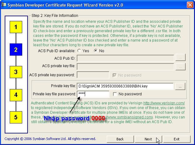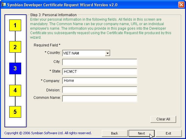 Symbian Developer Certificate Request và lần lượt làm như sau: