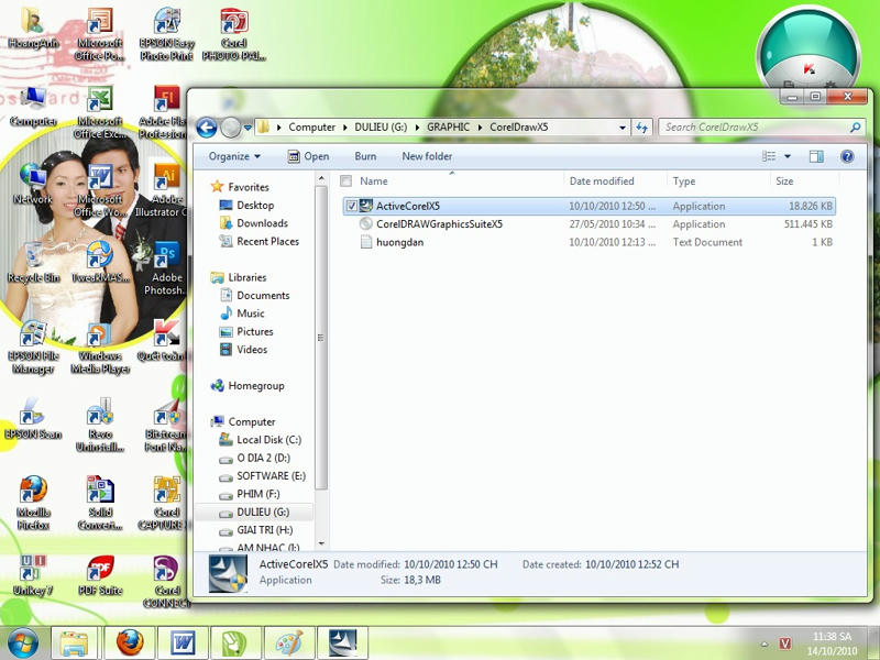 Đây là File Active CorelDRAW Graphic Suite X5 chạy trên mọi hệ điều hành, kể cả trên Win 7, các bạn có thể xem mình cài trên máy mình (Win 7 Ultimate 32x).mình pót luôn hình minh hoạ: